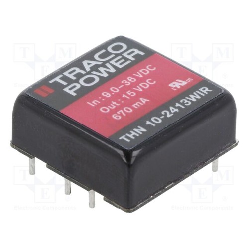 TRACO POWER THN 10-2413WIR | Перетворювач: DC/DC; 10Вт; Uвх: 9÷36ВDC; Uвих: 15ВDC; Iвих: 670мА