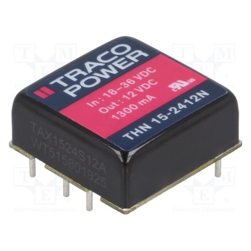 TRACO POWER THN 15-2412N | Перетворювач: DC/DC; 15Вт; Uвх: 18÷36ВDC; Uвих: 12ВDC; Iвих: 1,3А