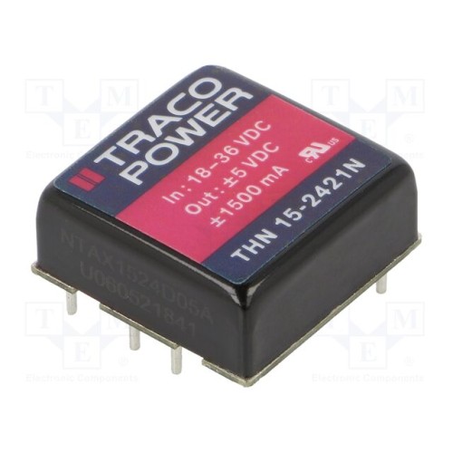 TRACO POWER THN 15-2421N | Перетворювач: DC/DC; 15Вт; Uвх: 18÷36ВDC; Uвих: 5ВDC; Uвих.2: -5ВDC