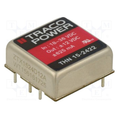 TRACO POWER THN 15-2422 | Перетворювач: DC/DC; 15Вт; Uвх: 18÷36ВDC; Uвих: 12ВDC; Iвих: 625мА