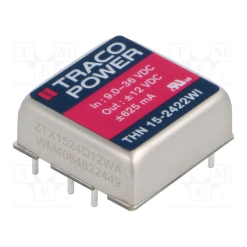 TRACO POWER THN 15-2422WI | Перетворювач: DC/DC; 15Вт; Uвх: 9÷36ВDC; Uвих: 12ВDC; Uвих.2: -12ВDC