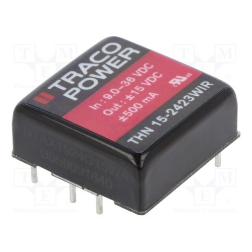 TRACO POWER THN 15-2423WIR | Перетворювач: DC/DC; 15Вт; Uвх: 9÷36ВDC; Uвих: 15ВDC; Uвих.2: -15ВDC