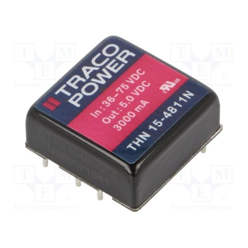 TRACO POWER THN 15-4811N | Перетворювач: DC/DC; 15Вт; Uвх: 36÷75ВDC; Uвих: 5ВDC; Iвих: 3А; 1\"x1\"