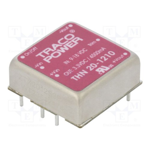 TRACO POWER THN 20-1210 | Перетворювач: DC/DC; 20Вт; Uвх: 9÷18ВDC; Uвих: 3,3ВDC; Iвих: 4500мА