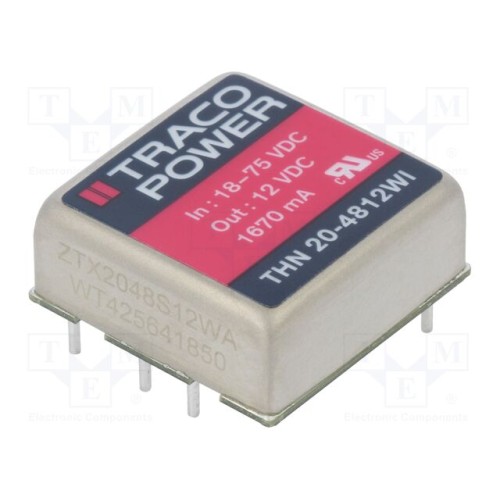 TRACO POWER THN 20-4812WI | Перетворювач: DC/DC; 20Вт; Uвх: 18÷75ВDC; Uвих: 12ВDC; Iвих: 1670мА