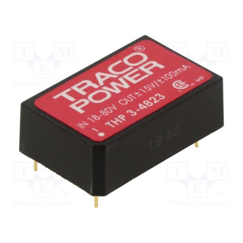 TRACO POWER THP 3-4823 | Перетворювач: DC/DC; 3Вт; Uвх: 18÷80ВDC; Uвих: 15ВDC; Uвих.2: -15ВDC