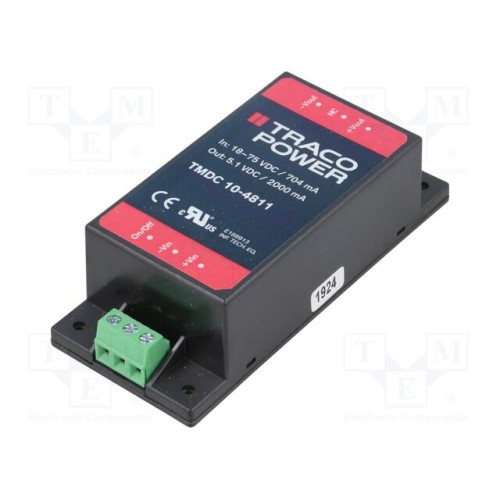 TRACO POWER TMDC 10-4811 | Перетворювач: DC/DC; 10Вт; Uвх: 18÷75ВDC; Uвих: 5,1ВDC; Iвих: 2000мА