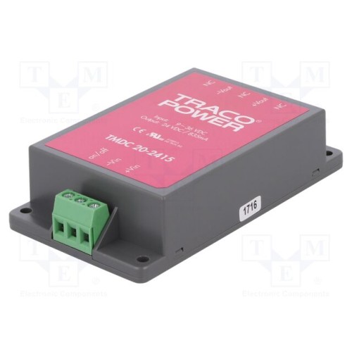 TRACO POWER TMDC 20-2415 | Перетворювач: DC/DC; 20Вт; Uвх: 9÷36ВDC; Uвих: 24ВDC; Iвих: 835мА