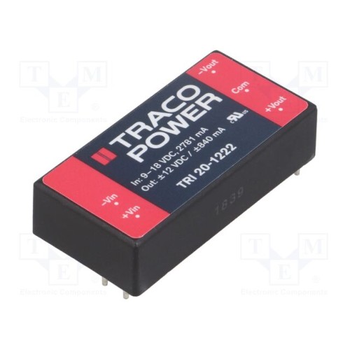 TRACO POWER TRI 20-1222 | Перетворювач: DC/DC; 20Вт; Uвх: 9÷18ВDC; Uвих: 12ВDC; Uвих.2: -12ВDC