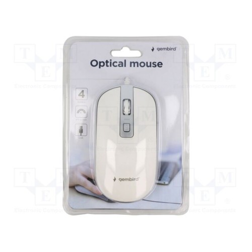 GEMBIRD MUS-4B-06-WS | Миша; білий,срібний; USB A; оптична,провідна; кнопка зміни DPI