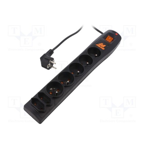 HSK DATA ACAR P7 3M BLACK | Мережевий фільтр: захисний; Гнізда: 7; 230ВAC; 10А; чорний
