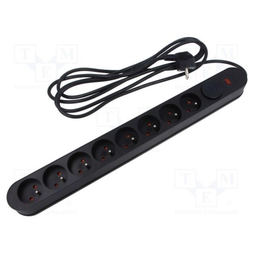 PLASTROL AL8/PL/3M/CZARNY | Мережевий фільтр: захисний; Гнізда: 8; 230ВAC; 10А; чорний; 1,5м