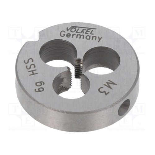 VÖLKEL 27426 | Плашка; M3; 0,5; Ø: 20мм; Thk: 5мм; швидкорізальна сталь HSS; 6g