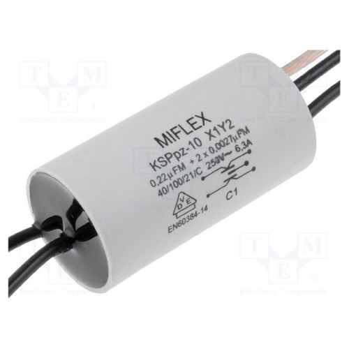 MIFLEX A10LU422M254M | Конденсатор: поліпропиленовий; X1,Y2; Cx: 100нФ; Cy: 2,7нФ; 250ВAC
