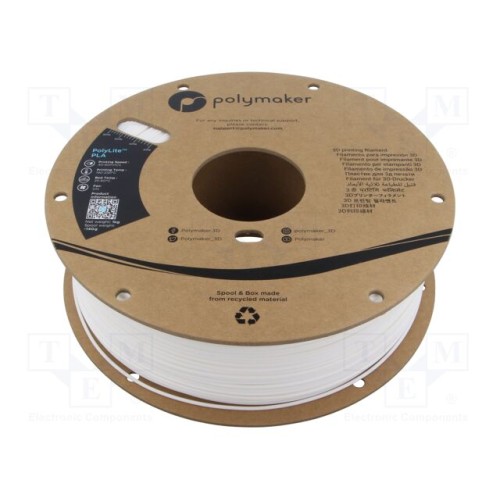 POLYMAKER PA02002 | Філамент: PLA; 1,75мм; білий; 190÷230°C; 1кг; Темп.столу: 45°C