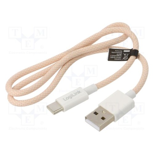 LOGILINK CU0323 | Кабель; USB 2.0; USB A вилка,USB C вилка; 500мм; рожевий; 60Вт; 3А