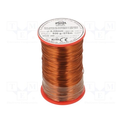 INDEL DN2E0,50-500G | Дріт обмотувальний; подвійно емальований; 0,5мм; 0,5кг; Жила: Cu