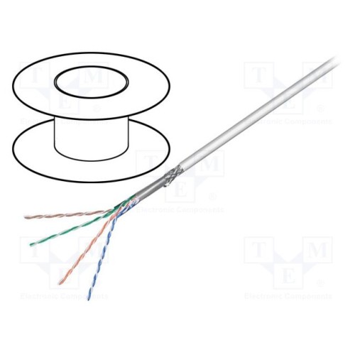 GOOBAY 15014 | Провід; SF/UTP; 4x2x26AWG; 5e; тросик; Cu; Ізоляція: ПВХ; сірий; 100м