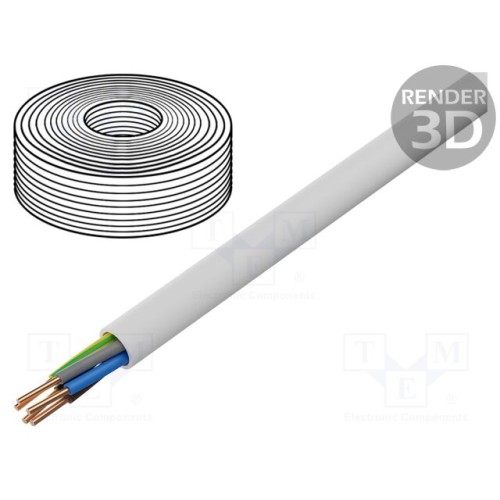 EOL | Провід; YDY; 5G1,5мм2; кругла; дріт; Cu; ПВХ; білий; 450В,750В; 100м