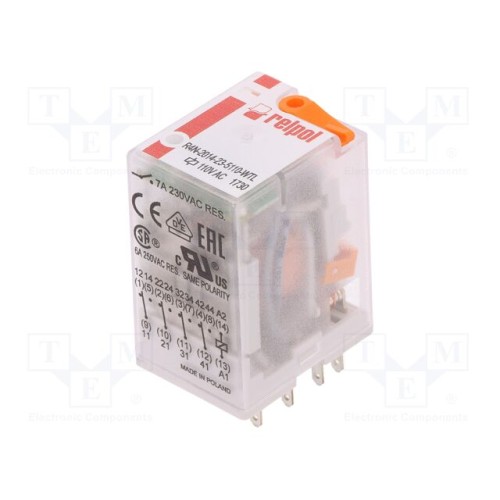 RELPOL R4N-2014-23-5110-WTL | Реле: електромагнітнe; 4PDT; Uкотушки: 110ВAC; Iконтактів max: 6А