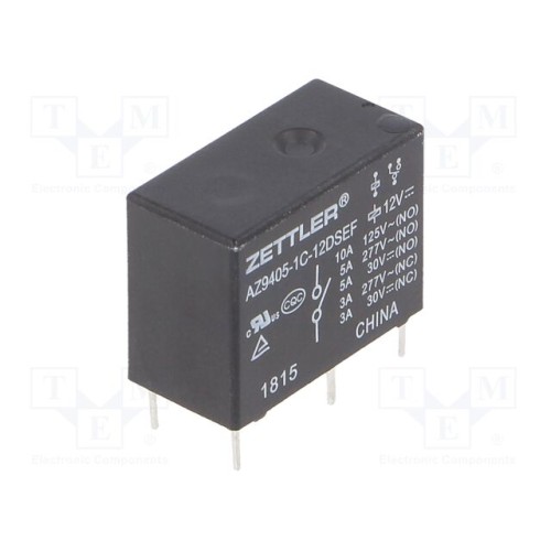 ZETTLER AZ9405-1C-12DSEF | Реле: електромагнітнe; SPDT; Uкотушки: 12ВDC; 10А; 5A/277ВAC; PCB