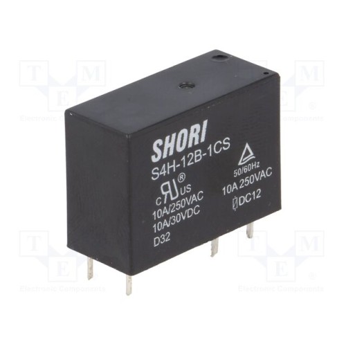 SHORI ELECTRIC S4H-12B-1C-F | Реле: електромагнітнe; SPDT; Uкотушки: 12ВDC; Iконтактів max: 10А