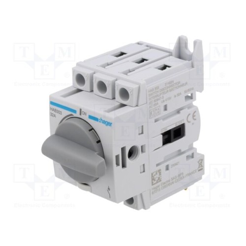 HAGER HAB303 | Ізоляційний вимикач; Полюси: 3; на шину DIN; 32А; 415ВAC; IP20