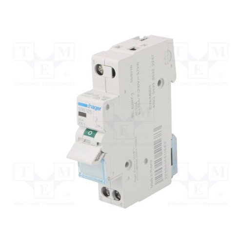 HAGER SBB125 | Ізоляційний вимикач; Полюси: 1; на шину DIN; 25А; 230ВAC; IP20