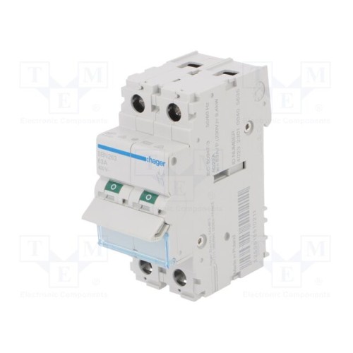 HAGER SBN263 | Ізоляційний вимикач; Полюси: 2; на шину DIN; 63А; 400ВAC; IP20