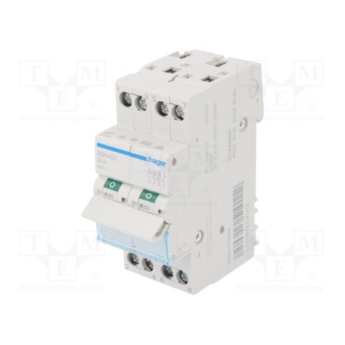 HAGER SBN425 | Ізоляційний вимикач; Полюси: 4; на шину DIN; 25А; 400ВAC; IP20