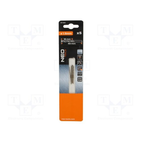 NEO TOOLS 57-012 | Набір свердел; для металу; Ø: 1,5мм; L: 40мм; тримач: циліндровий