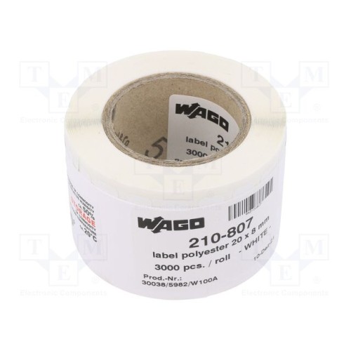 WAGO 210-807 | Етикетка; 8мм; 20мм; білий; самоклеюча; -40÷150°C