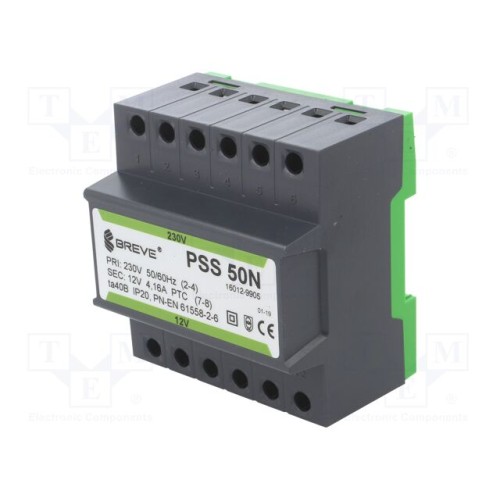 BREVE TUFVASSONS 16012-9905 | Трансформатор: мережевий; 50ВА; 230ВAC; 12В; Вив: затискна планка