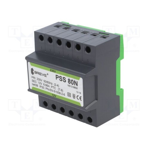 BREVE TUFVASSONS 16012-9906 | Трансформатор: мережевий; 80ВА; 230ВAC; 12В; Вив: затискна планка
