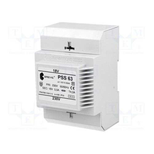 BREVE TUFVASSONS 16018-9994 | Трансформатор: мережевий; 63ВА; 230ВAC; 18В; Вив: затискна планка