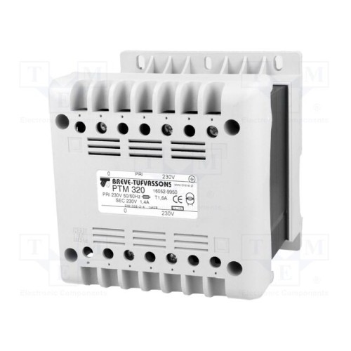 BREVE TUFVASSONS 16052-9950 | Трансформатор: мережевий; 320ВА; 230ВAC; 230В; на шину DIN; IP21