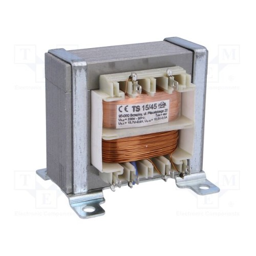 INDEL TS 15/45 | Трансформатор: мережевий; 15ВА; 230ВAC; 15,7В; 10,5В; 600мА; 500мА