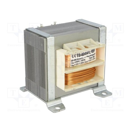 INDEL TS 40/041 | Трансформатор: мережевий; 40ВА; 230ВAC; 15В; 15В; 1,35А; 1,35А; IP00