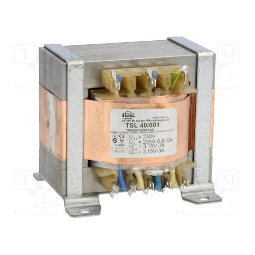 INDEL TSL 40/001 | Трансформатор: мережевий; 230ВAC; 235В; 3,15В; 3,15В; 0,075А; 3А; 3А
