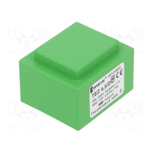 BREVE TUFVASSONS 16012-9903 | Трансформатор: литий; 4,5ВА; 230ВAC; 12В; 375мА; PCB; IP00; TEZ
