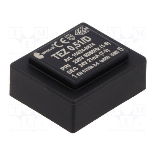 BREVE TUFVASSONS 16024-9874 | Трансформатор: литий; 0,5ВА; 230ВAC; 24В; PCB; IP00; TEZ; A: 28мм