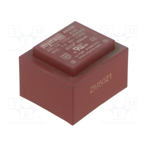 MYRRA 44206 | Трансформатор: литий; 3,2ВА; 117ВAC; 9В; 356мА; PCB; 41x35x28мм