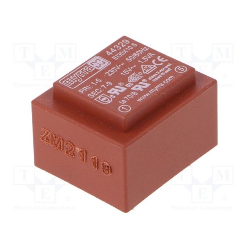 MYRRA 44329 | Трансформатор: литий; 1,5ВА; 230ВAC; 15В; 100мА; PCB