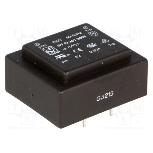 HAHN BV EI 301 3005 | Трансформатор: литий; 0,5ВА; 230ВAC; 6В; 83мА; PCB; BVEI