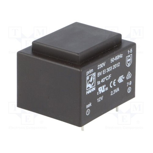 HAHN BV EI 303 2012 | Трансформатор: литий; 2,3ВА; 230ВAC; 12В; 191мА; PCB; BVEI