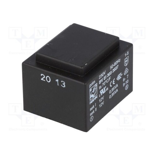 HAHN BV EI 303 2037 | Трансформатор: литий; 1,9ВА; 230ВAC; 12В; 12В; 79мА; 79мА; PCB; BVEI
