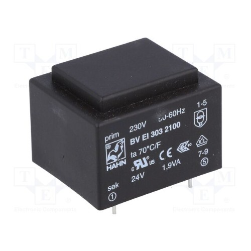 HAHN BV EI 303 2100 | Трансформатор: литий; 1,9ВА; 230ВAC; 24В; 79мА; PCB; BVEI