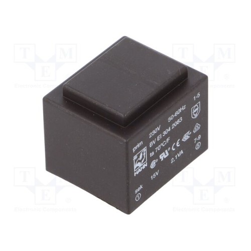 HAHN BV EI 304 2083 | Трансформатор: литий; 2,1ВА; 230ВAC; 15В; 140мА; PCB; BVEI