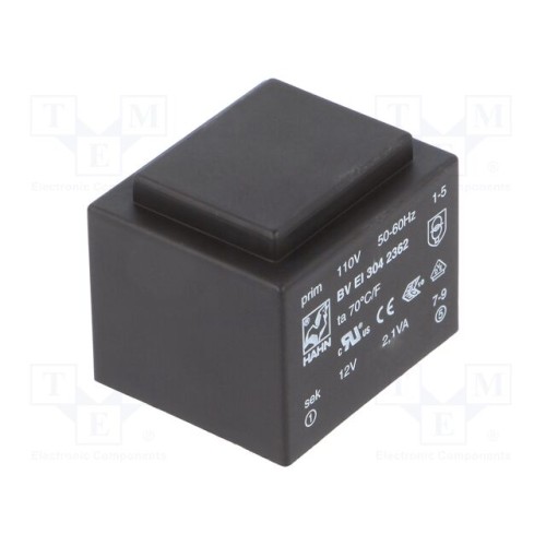 HAHN BV EI 304 2362 | Трансформатор: литий; 2,1ВА; 110ВAC; 12В; 175мА; PCB; BVEI