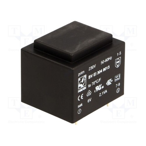 HAHN BV EI 304 8013 | Трансформатор: литий; 2,1ВА; 230ВAC; 6В; 350мА; PCB; BVEI